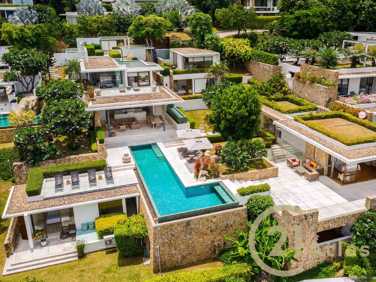 La cuisine ouverte est bien équipée et la villa offre une grande terrasse au coucher du soleil qui peut être transformée en lieu de divertissement. Transpirez avec style dans la salle d’entraînement avec une gamme d’équipements. Une salle de spa dédiée est le sanctuaire idéal pour profiter d’une séance de yoga, de massage et de yoga traditionnel thaïlandais.