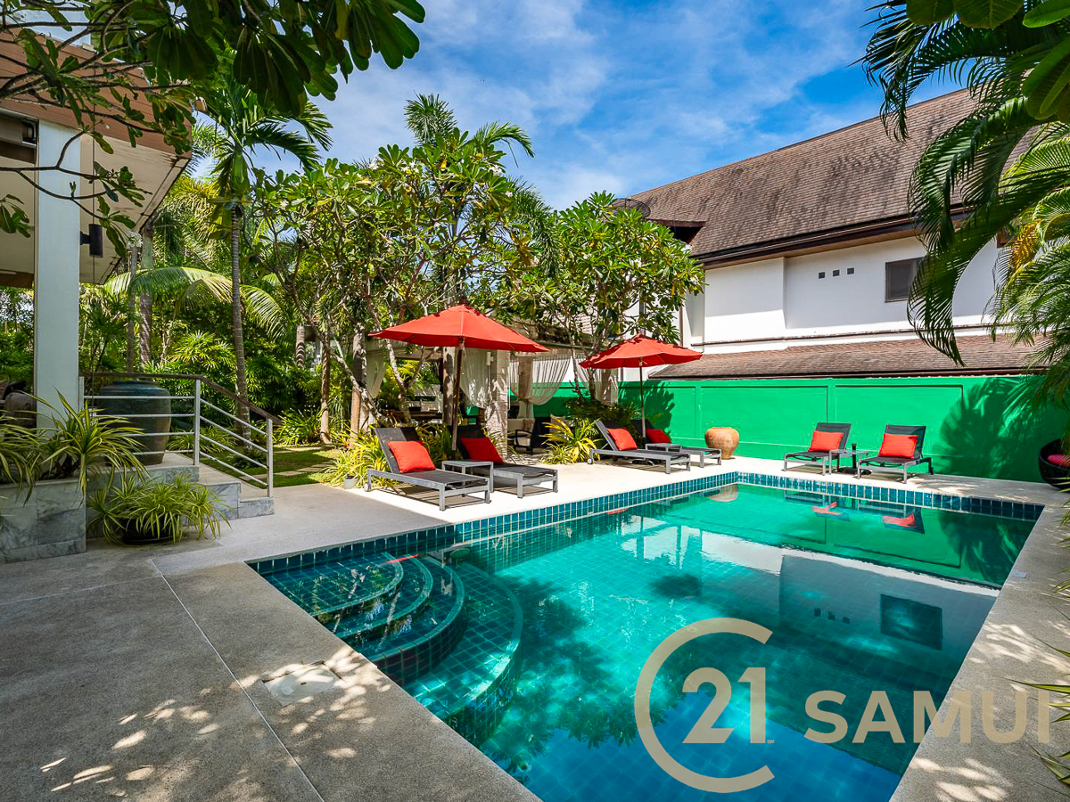 Beachside 4-Bedroom Pool Villa With Tropical Gardens For Sale In Taling Ngam, Koh Samui, Thailand