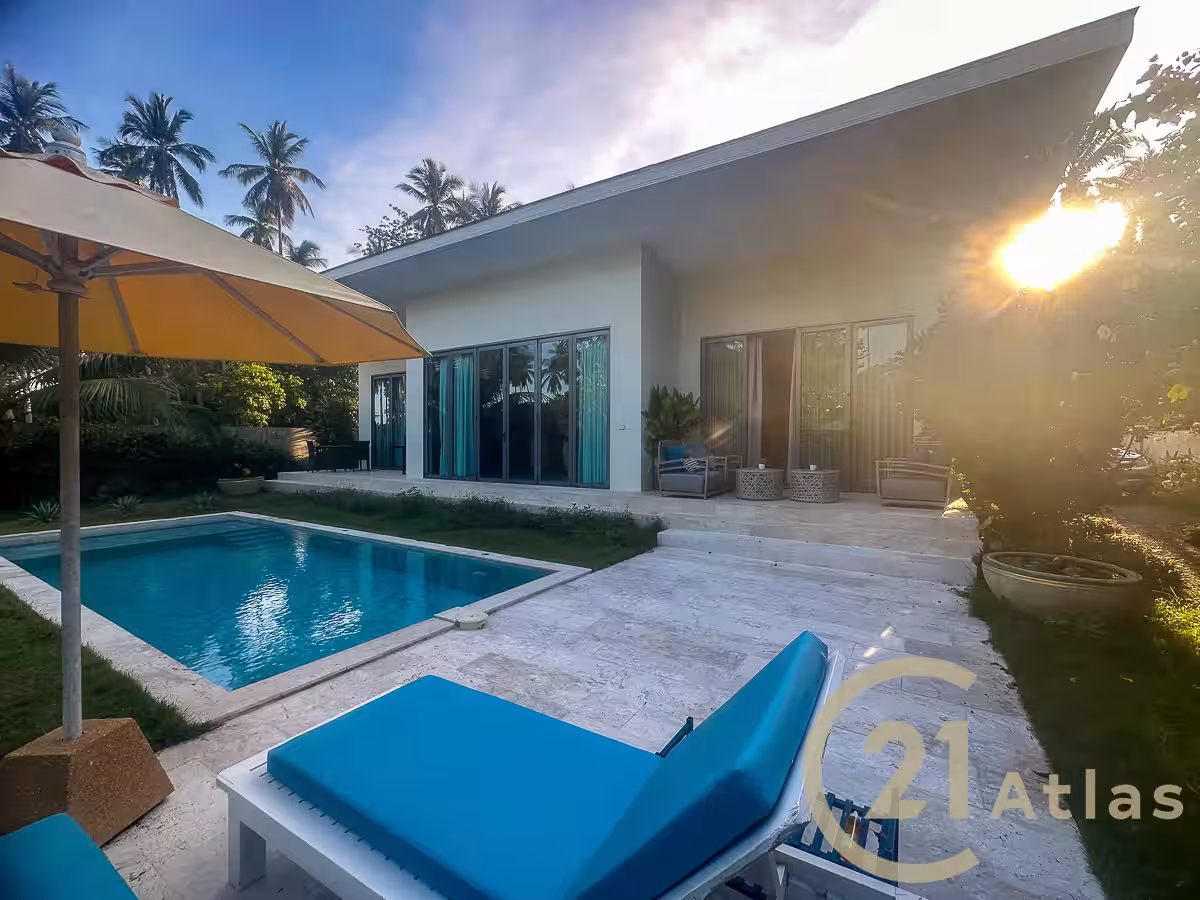 Single story pool villa with 2 bedrooms and 2 bathrooms