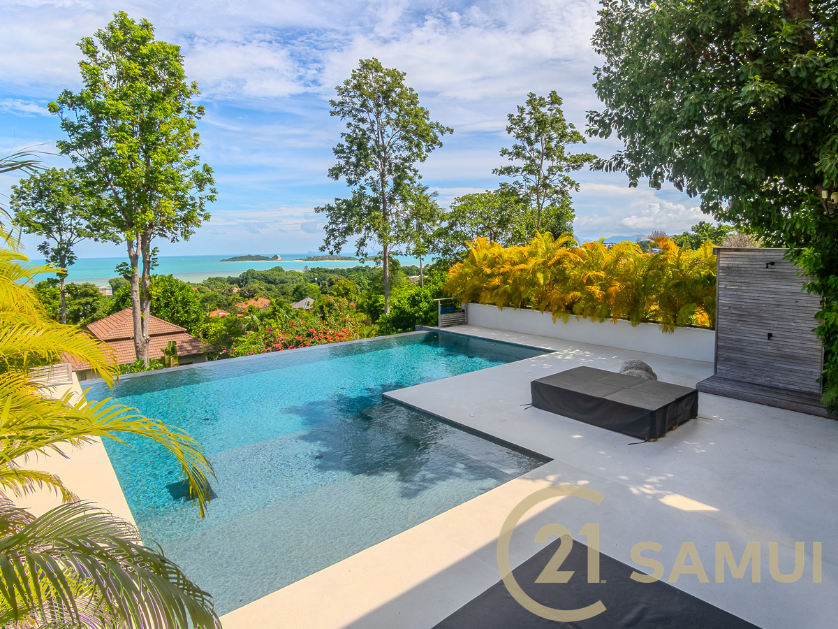 This sea view pool villa is located in Plai Laem at 1 km from the main road, 7-11, Mini Big C and restaurant – 1.3 km from the beach – 2.4 km from Bangrak Market – 5.3 km from Samui International Airport – 6.7 km from International School of Samui – 6.9 km from Central Samui